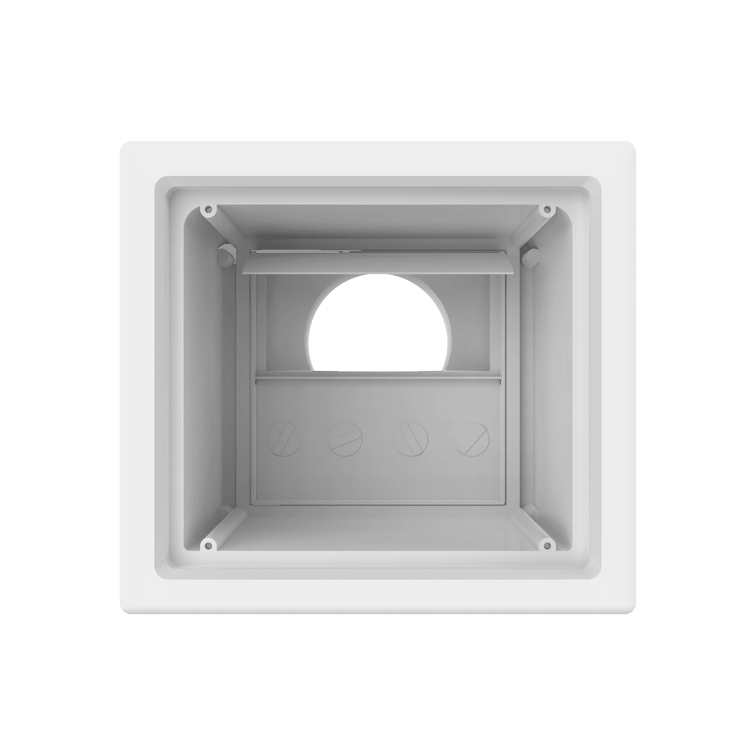 4″ single exhaust box for use with precast concrete, aluminum panel and similar exteriors. Includes mounting straps and gravity backdraft damper, which can be easily removed to convert box to an intake application. Can be customized to fit unique field conditions.
