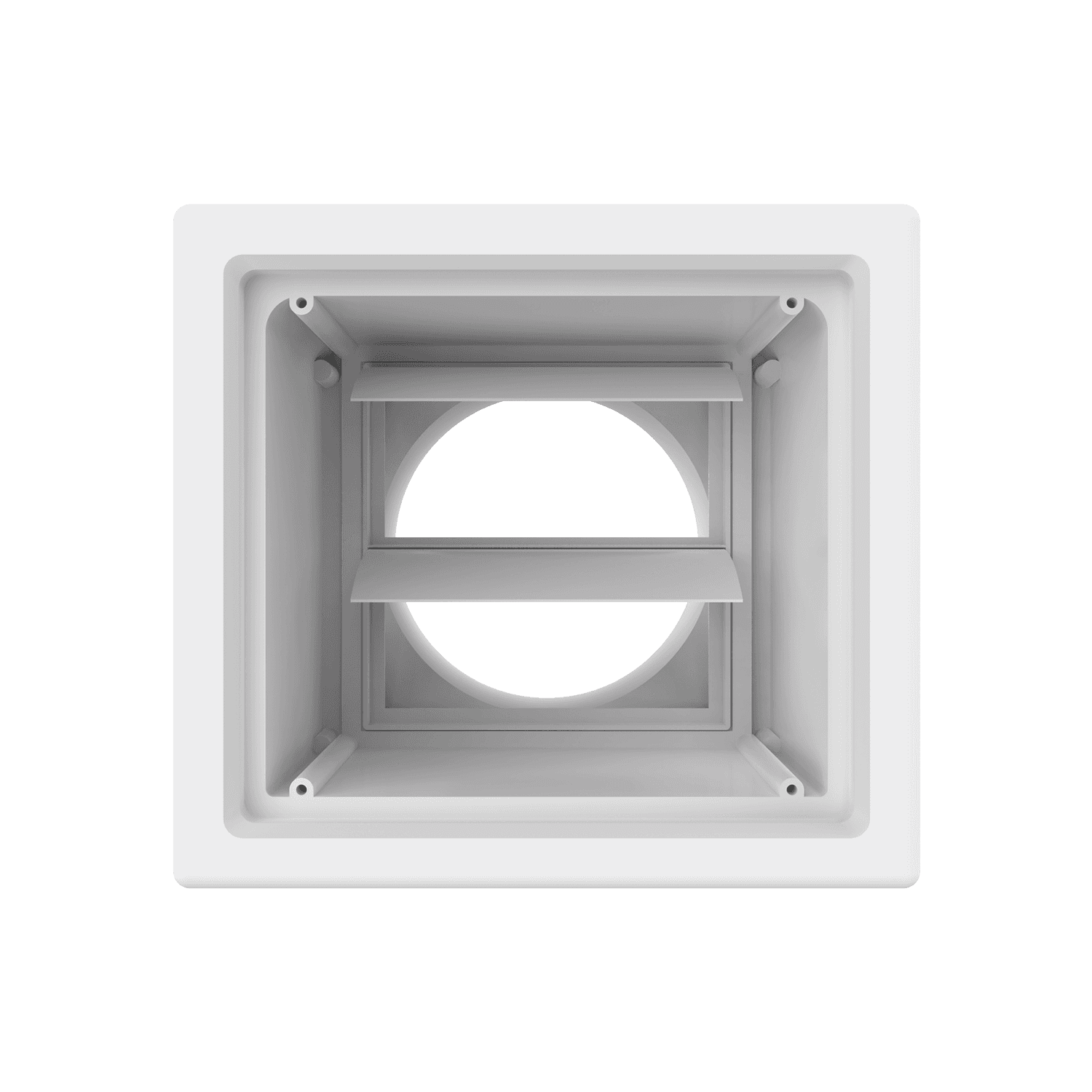 6″ single exhaust box for use with precast concrete, aluminum panel and similar exteriors. Includes mounting straps and gravity backdraft damper, which can be easily removed to convert box to an intake application. Can be customized to fit unique field conditions.