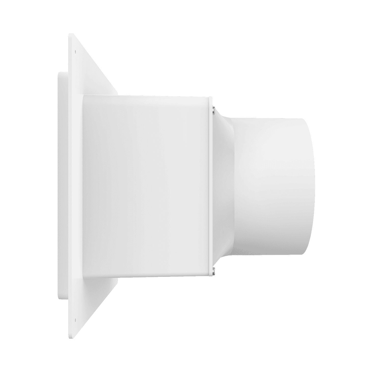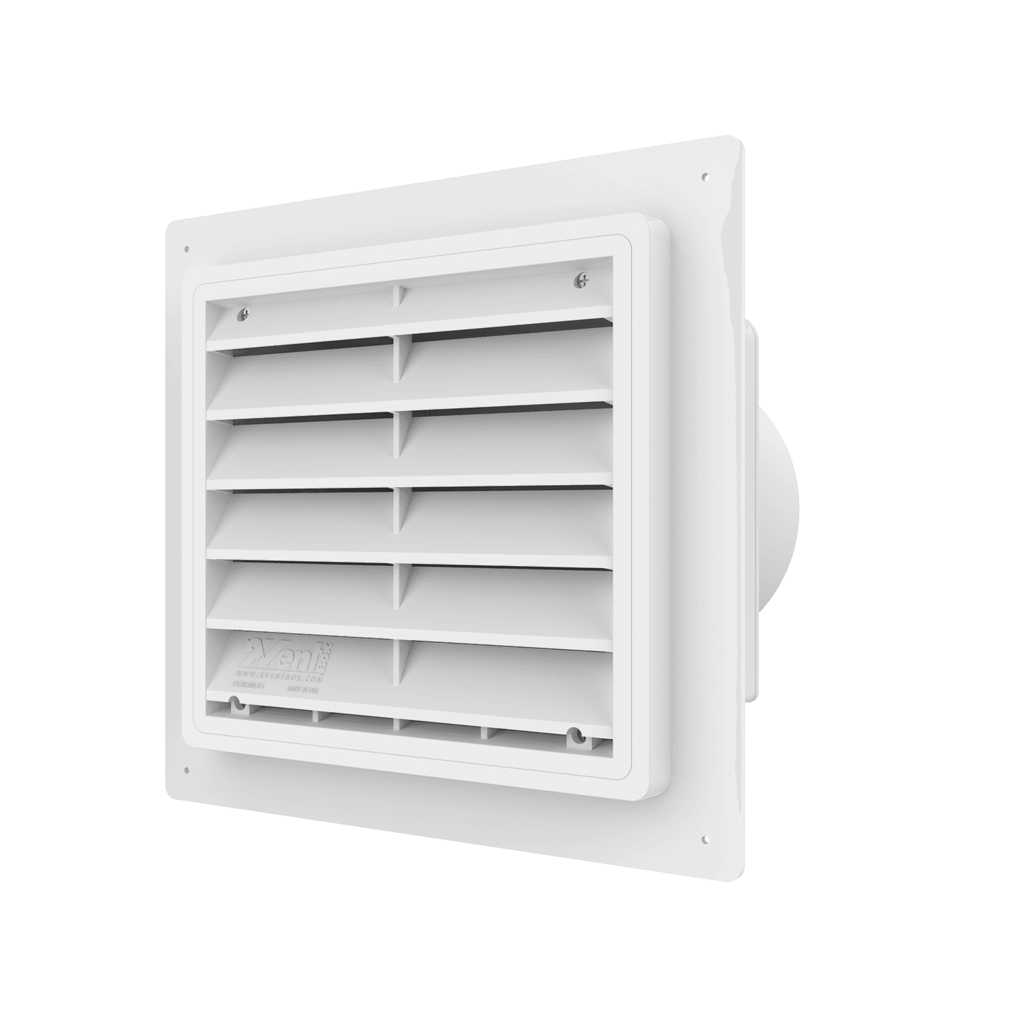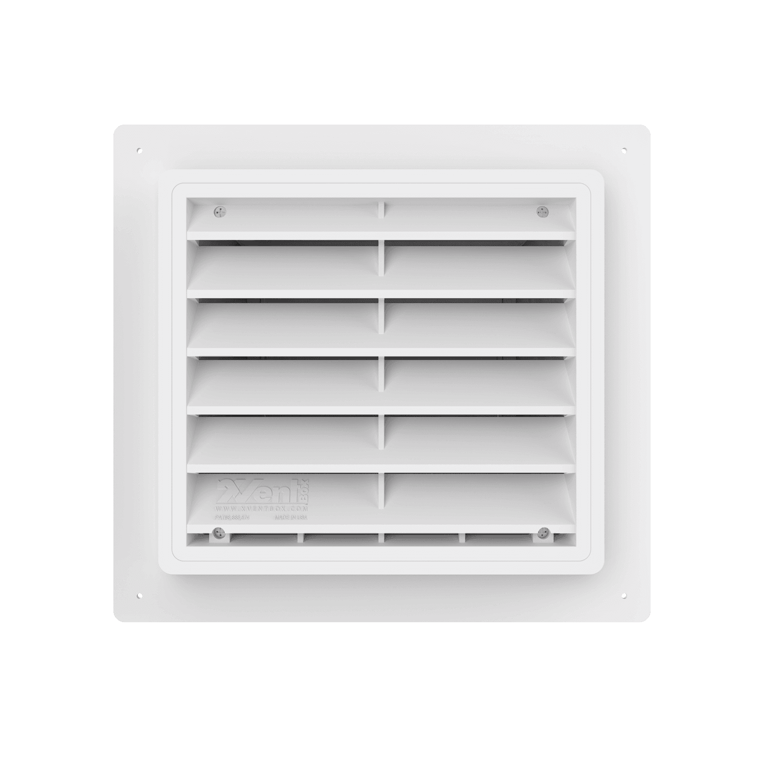 6″ single exhaust box for use with stucco/siding and similar exteriors less than 7/8″ thick. Includes gravity backdraft damper, which can be easily removed to convert box to an intake application. Can be customized to fit unique field conditions.