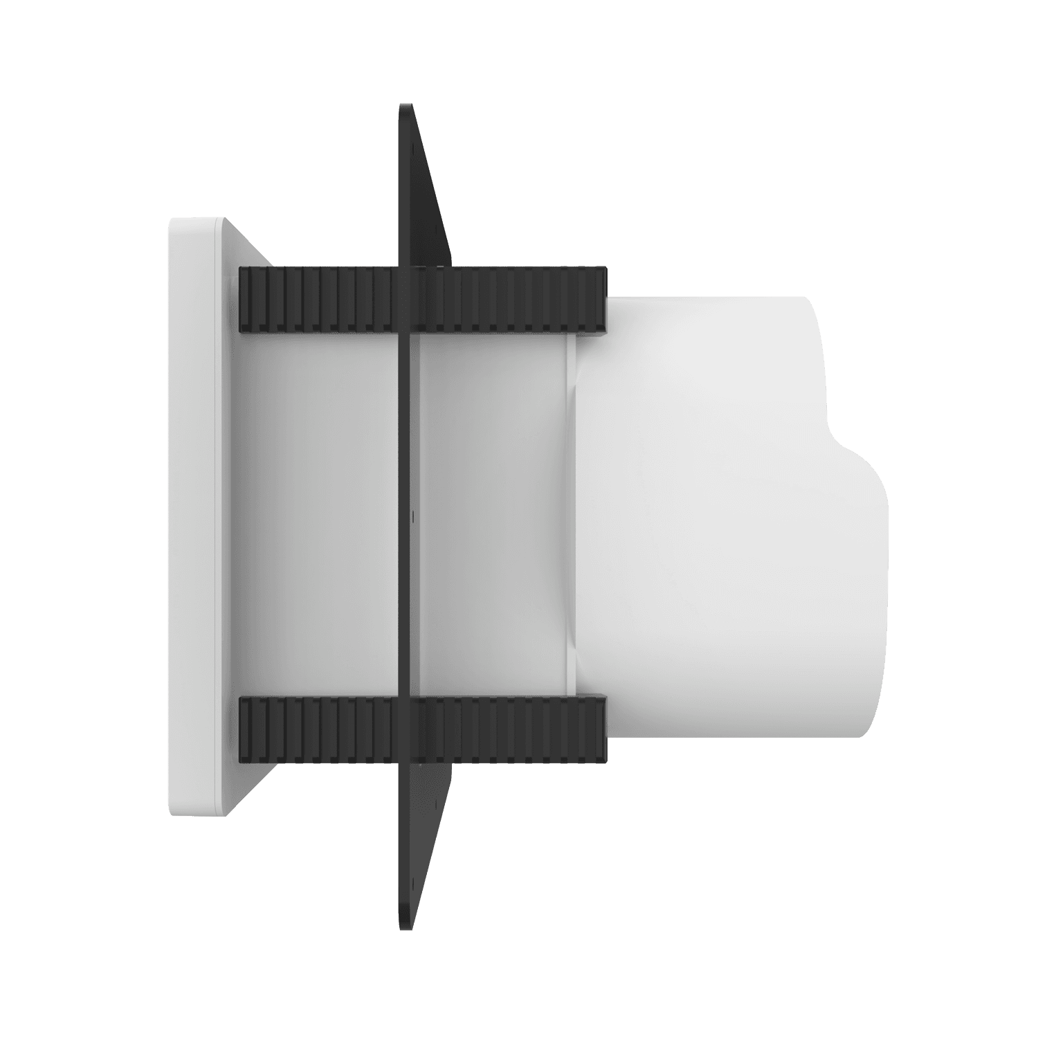 8″ single exhaust box for use with brick/stone, EIFS, metal panel, stucco/siding greater than 7/8″ thick and similar exteriors. Includes adjustable mounting flange with an offset range of 1″-6″ and gravity backdraft damper, which can be easily removed to convert box to an intake application. Can be customized to fit unique field conditions.
