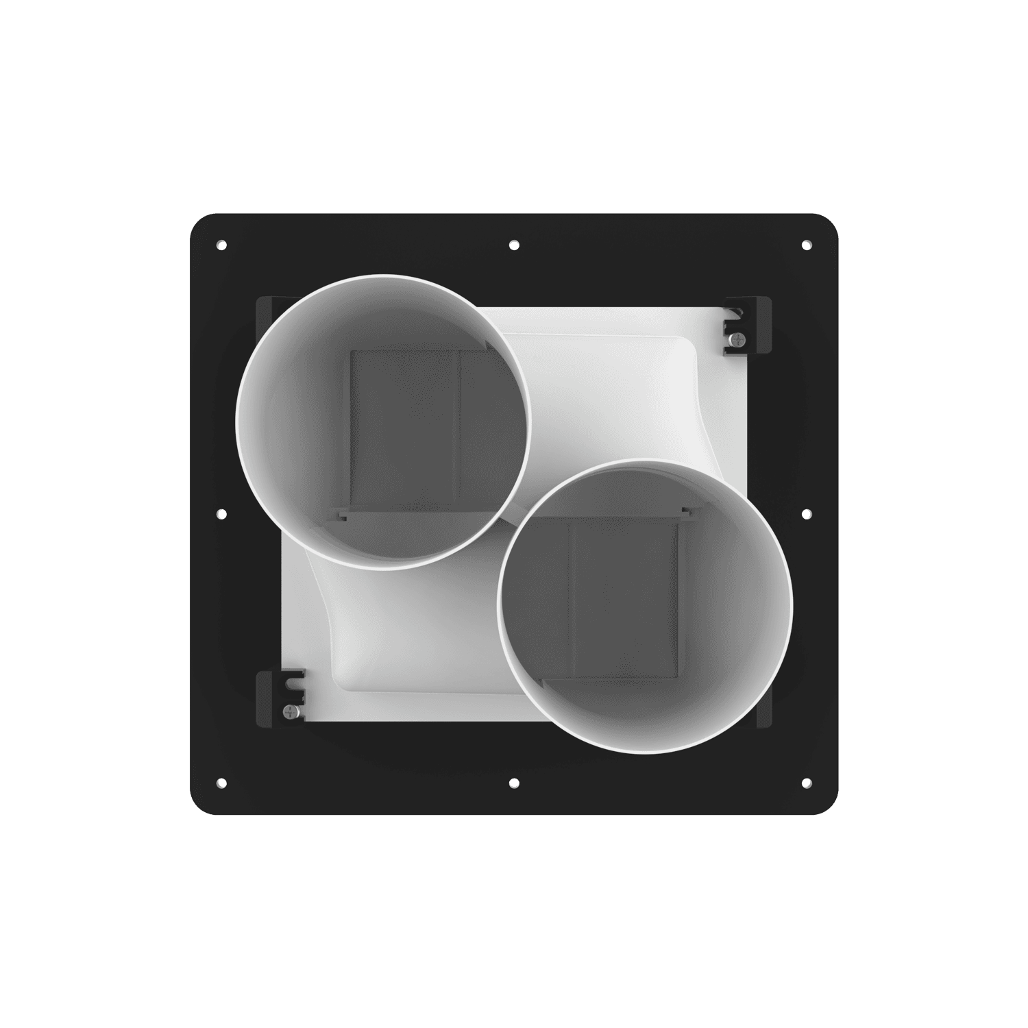 The SEB Series is a single termination cavity box that offers duct sizes of 4”, 6” or 8”. The MDEB Series is a double cavity termination box, offering two 4” duct ports. Separator fins keep exhaust venting from interacting with each other.