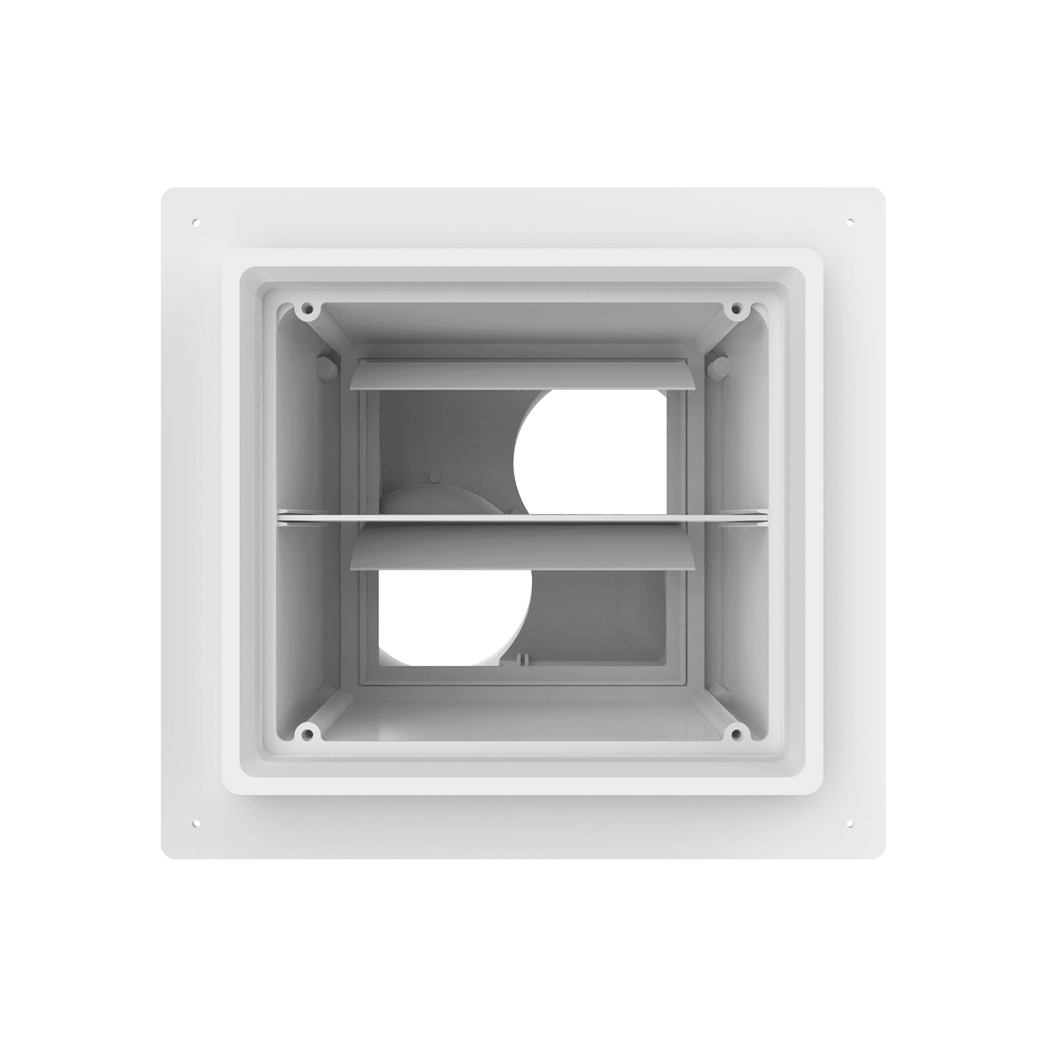 Single size exhaust box with a double 4″/4″ termination for use with stucco/siding and similar exteriors less than 7/8″ thick. Includes gravity backdraft dampers and a separator fin which prevents exhaust from mingling inside the box. Can be customized to fit unique field conditions.
