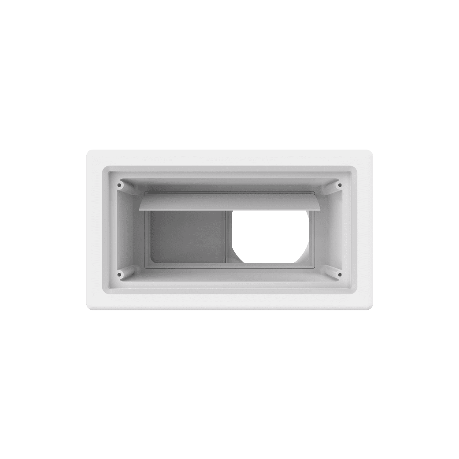 4″ horizontal low profile exhaust box for use with precast concrete, aluminum panel and similar exteriors. Includes gravity backdraft damper and mounting straps. Can be customized to fit unique field conditions.