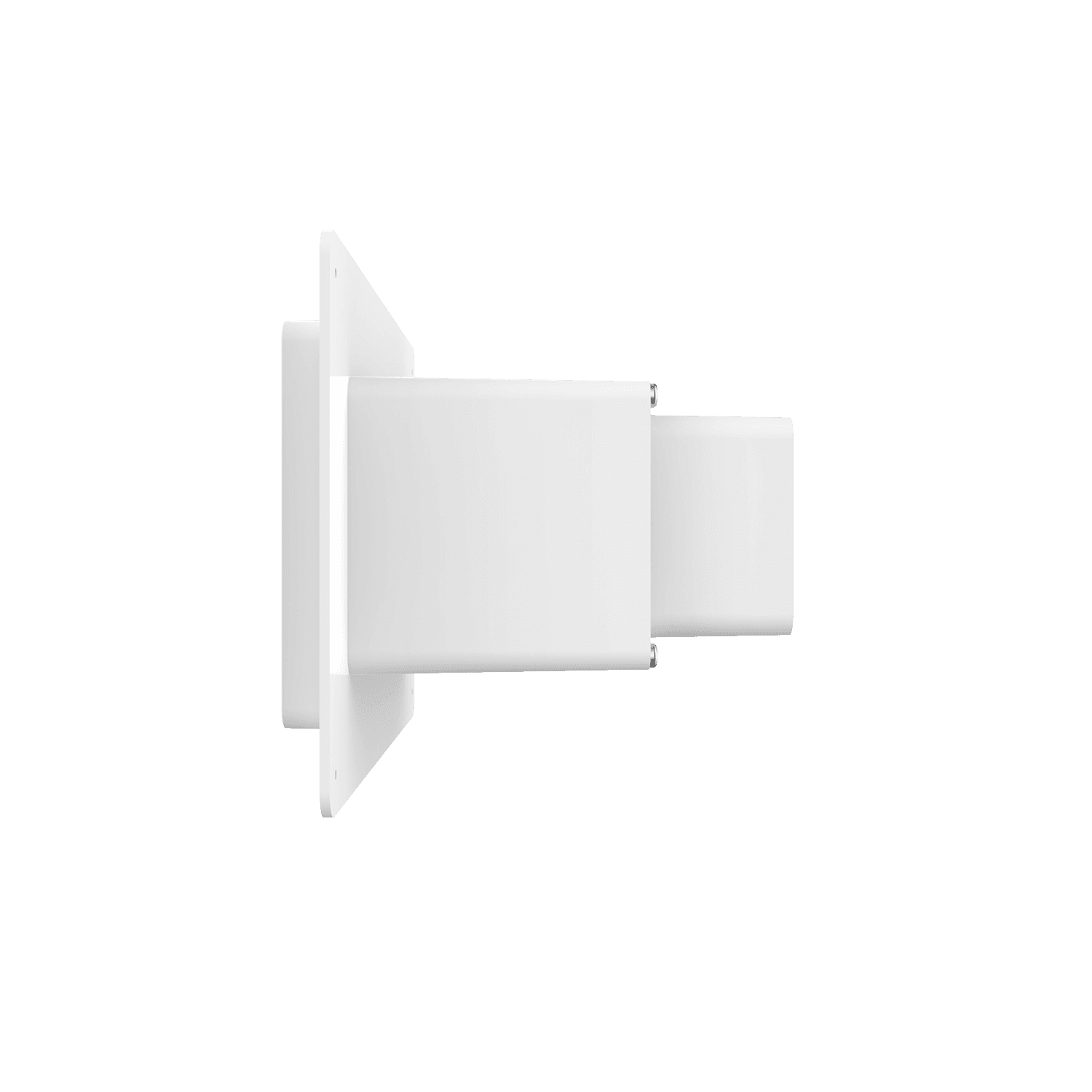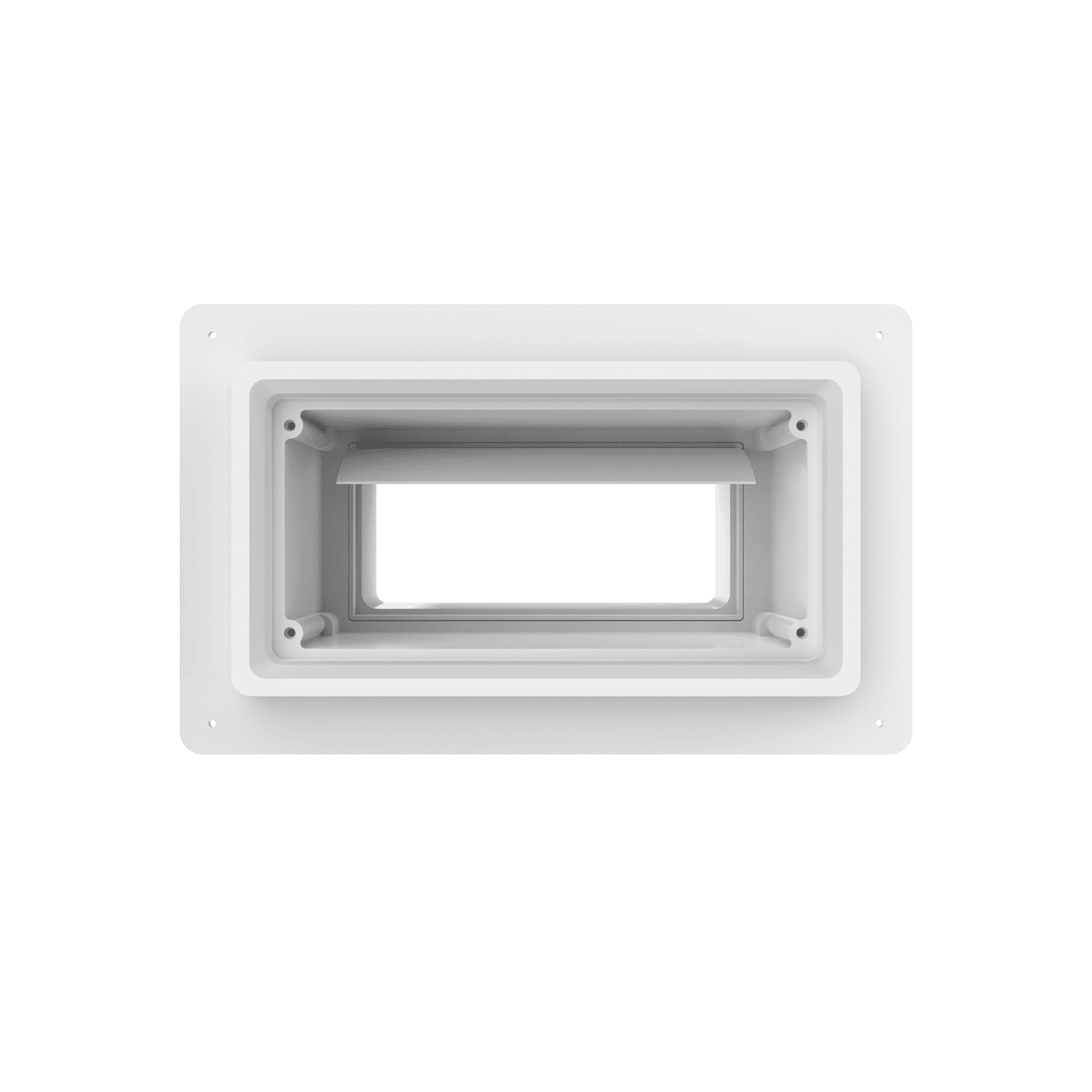 5″ horizontal low profile exhaust box, for use with stucco/siding and similar exteriors less than 7/8″ thick. Includes gravity backdraft damper. Requires the use of a duct boot transition (sold separately). Can be customized to fit unique field conditions.
